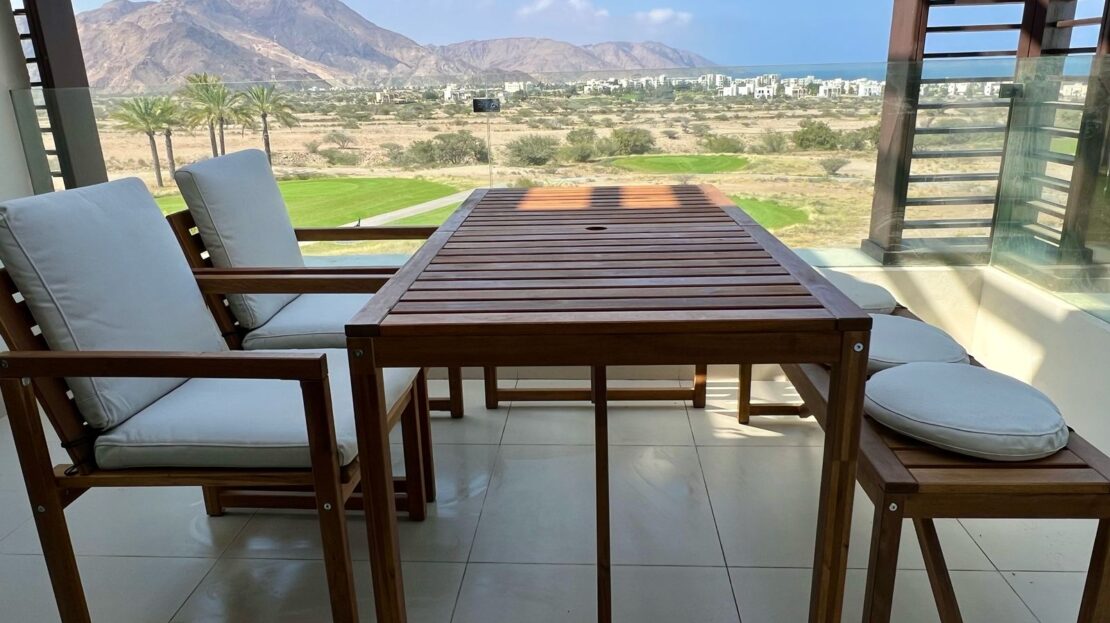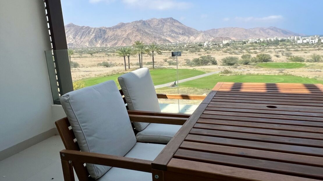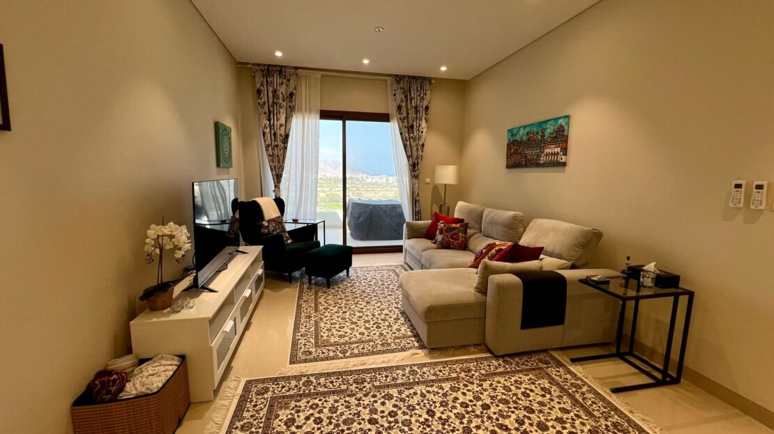 Own a beautiful fully furnished apartment in the prestigious Jebel Sifah resort community, offering peaceful surroundings and a stunning golf course view.
